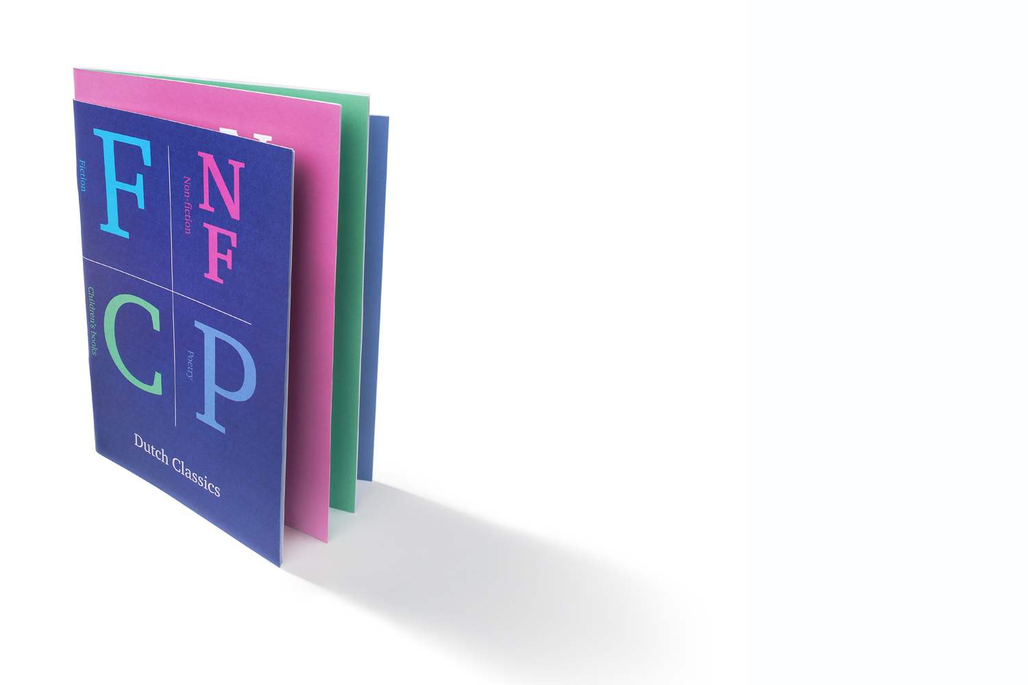 De publicatie is zo ontworpen dat het lijkt alsof het vier afzonderlijke brochures betreft welke in elkaar zijn geschoven, terwijl het toch duidelijk een geheel is. Handig om als overzicht te presenteren maar ook voor de vier secties van het Nederlands Letterenfonds – Fictie, Non-fictie, Kinderboeken, Poëzie – apart, bijzonder bruikbaar.